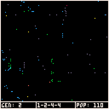 - TIP: If the game is running slowly, try increasing the number of GEN STEPS